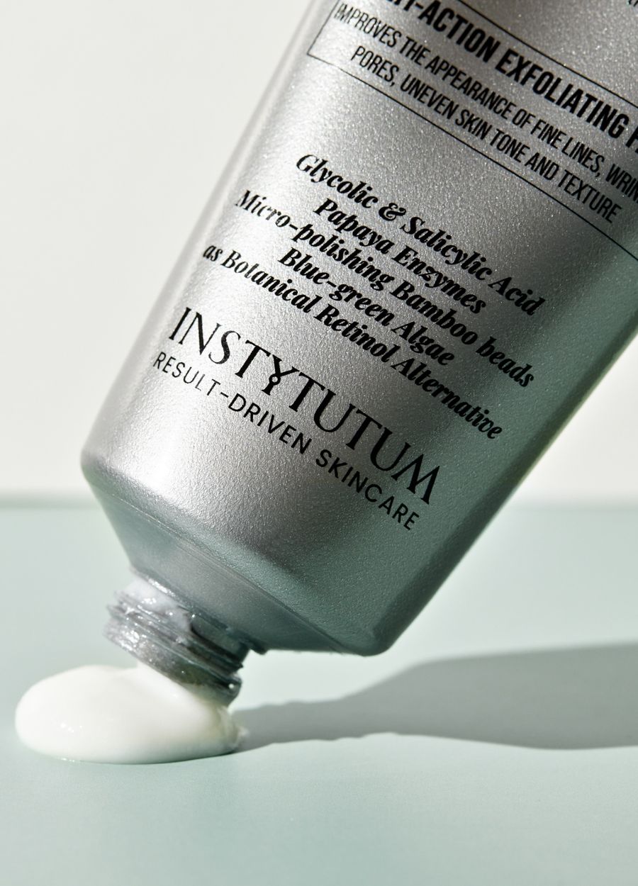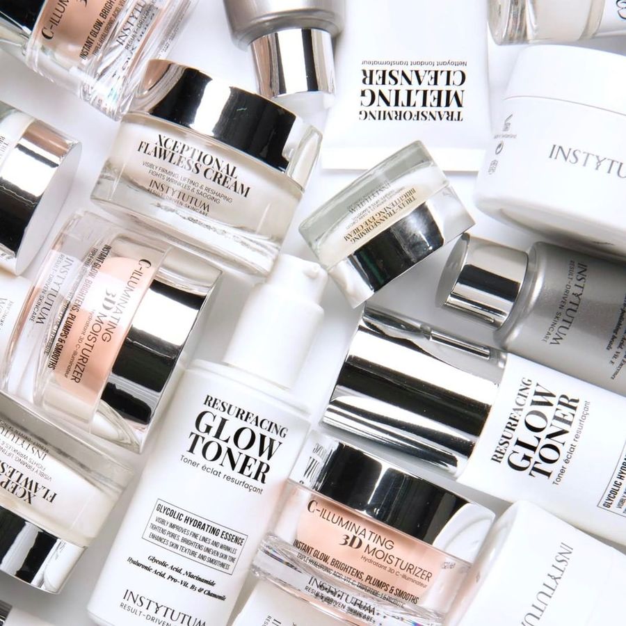 Перших засобів було одразу сім, повний протокол. Ми починали не з одного продукту, а з повноцінної б’юті рутини. У лінійці INSTYTUTUM на початку були: гідрофільний бальзам для очищення – Transforming Melting Cleanser; тонер з кислотами – Resurfacing Glow Toner; сироватка з 15% вітаміну С THD (покращена жиророзчинна формула); зволожувальний крем Xceptional Flawless Cream; крем під очі – Truly Transforming Brightening Eye Cream; і продукти для делікатної ексфоліації шкіри вдома – Triple Action Resurfacing Peel та Flawless Pads.