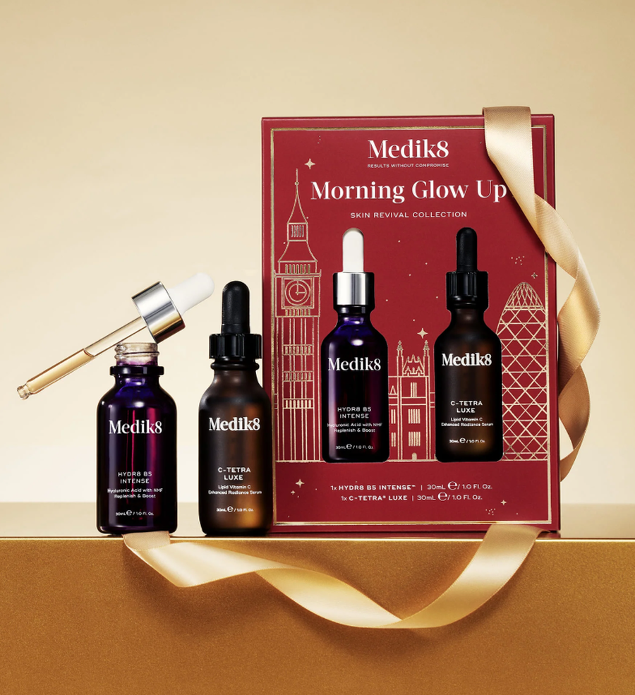 Дві культові сироватки Medik8 допоможуть легко позбутися ознак сухої, тьмяної шкіри. Сироватка з вітаміном C C-Tetra Luxe посилює природне сяйво та антиоксидантний захист шкіри, а сироватка з гіалуроновою кислотою Hydr8 B5 Intense наповнює природні запаси гіалуронової кислоти у шкірі та забезпечує пружність зсередини.