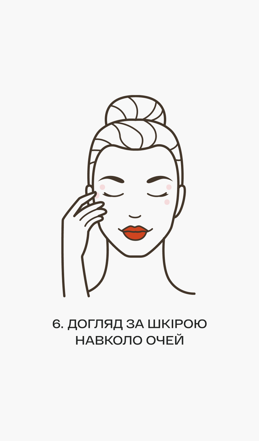 Окремим етапом виділяємо і піклування про ніжну та вибагливу шкіру навколо очей, що першою видає ознаки втоми, а також вікові зміни на обличчі. Ця ділянка тонка та вразлива, товщина епідермісу тут в 4 рази менша, ніж на інших зонах обличчя. Шкіра в області очей не містить потових і сальних залоз, саме тому тут першими зʼявляються зморшки, набряки, тьмяність та втрата еластичності. Косметологи радять розпочинати догляд за зоною навколо очей приблизно у 25 років. А ось обовʼязковим цей етап у вашій бʼюті-рутині має бути після 40 років.